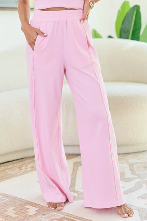 • Wide leg lounge pants with seam detailing