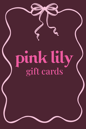 Give the gift of Pink Lily! Perfect for any occasion!The gift card will be sent to your email address, and you can forward it along to the lucky recipient. *Gift card purchases do not count towards cart total for gift with purchase promotions.*Discounts cannot be used on gift card purchases.*Gift card purchases are excluded from earning Pink Perks reward points.