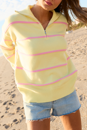 • Striped short sleeve sweater top