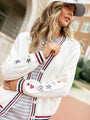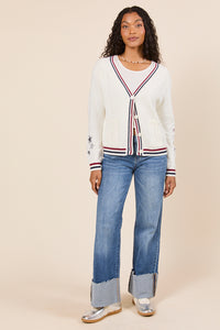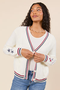 Brie Striped Trim Varsity Long Sleeve Cardigan FINAL SALE