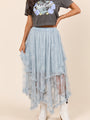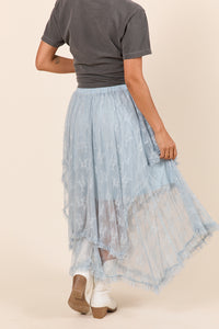 Dusty Blue All Over Lace Hanky Hem Skirt