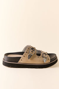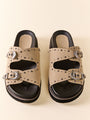 Taupe Buckle Slide Sandals