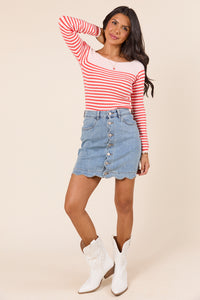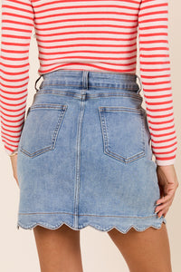 My Favorite Medium Wash Scallop Detail Skirt FINAL SALE