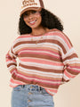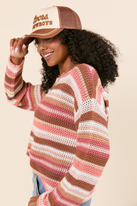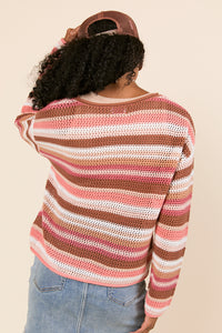 Raelyn Brown Striped Open Knit Sweater