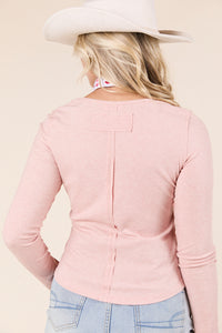 Suanna Long Sleeve Pink Ribbed Knit Tee