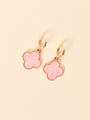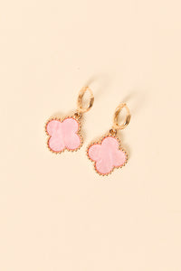 Gold huggie hoop earrings with dyed Mother of Pearl Clover charm