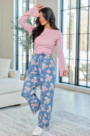 • Wide leg lounge pants with seam detailing