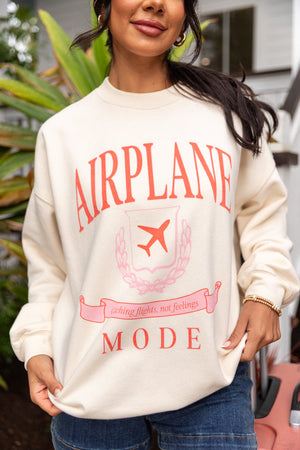 • Cream crewneck with airplane mode vacation design